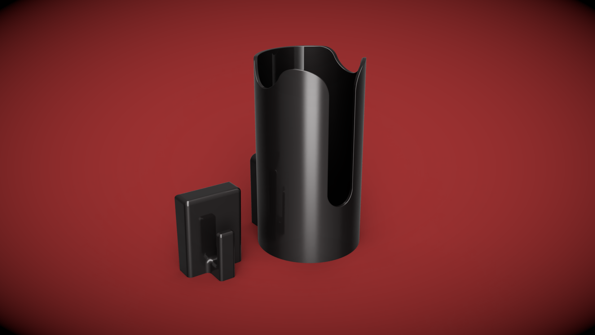 Der Getränkehalter kann dank der Schiene in wenigen Sekunden auf den Haken umgebaut werden.